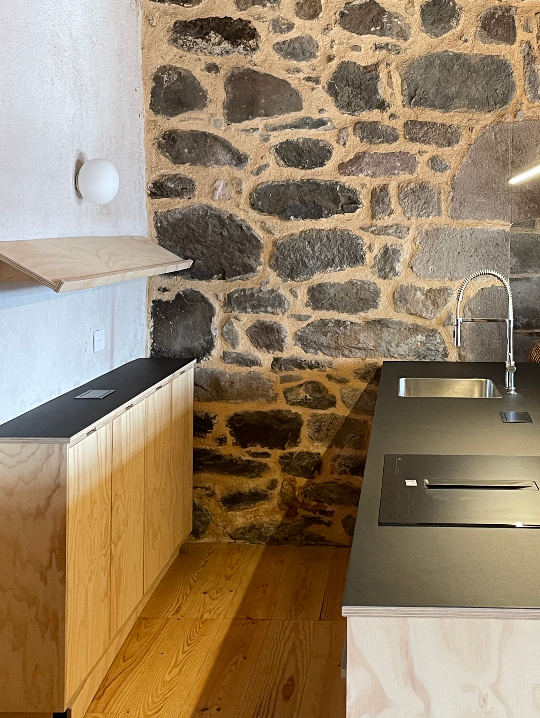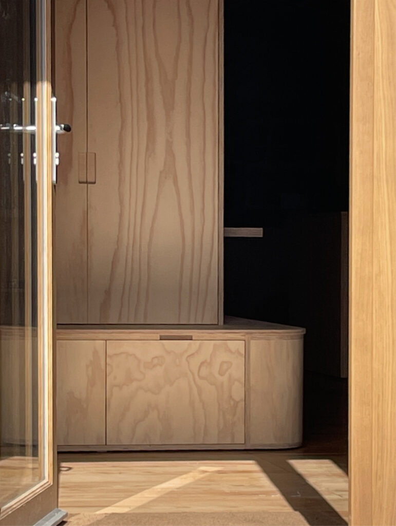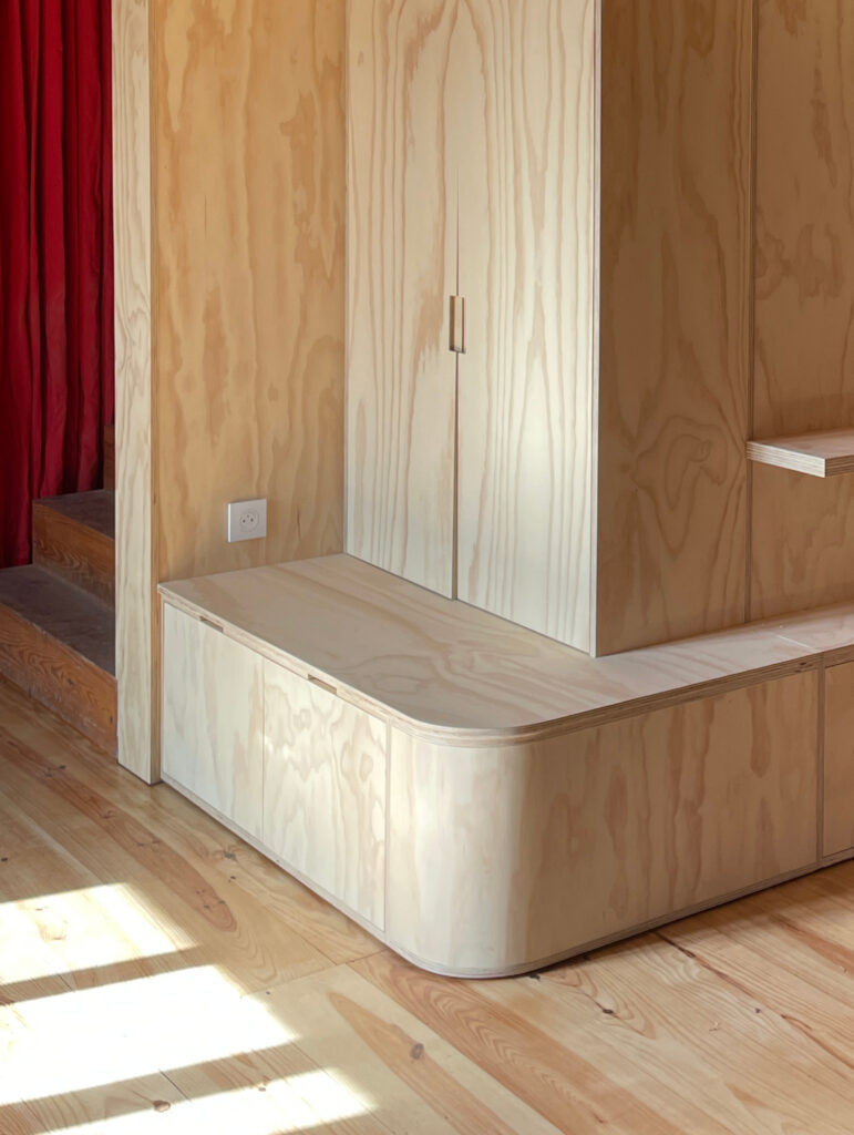 À l’intérieur, chaque détail a été dessiné pour faciliter la vie quotidienne. Le mobilier sur mesure accompagne naturellement les gestes, optimise les volumes et clarifie les circulations. L’ensemble compose un lieu plus fluide, plus lisible et plus confortable, où chaque élément trouve sa place avec évidence.