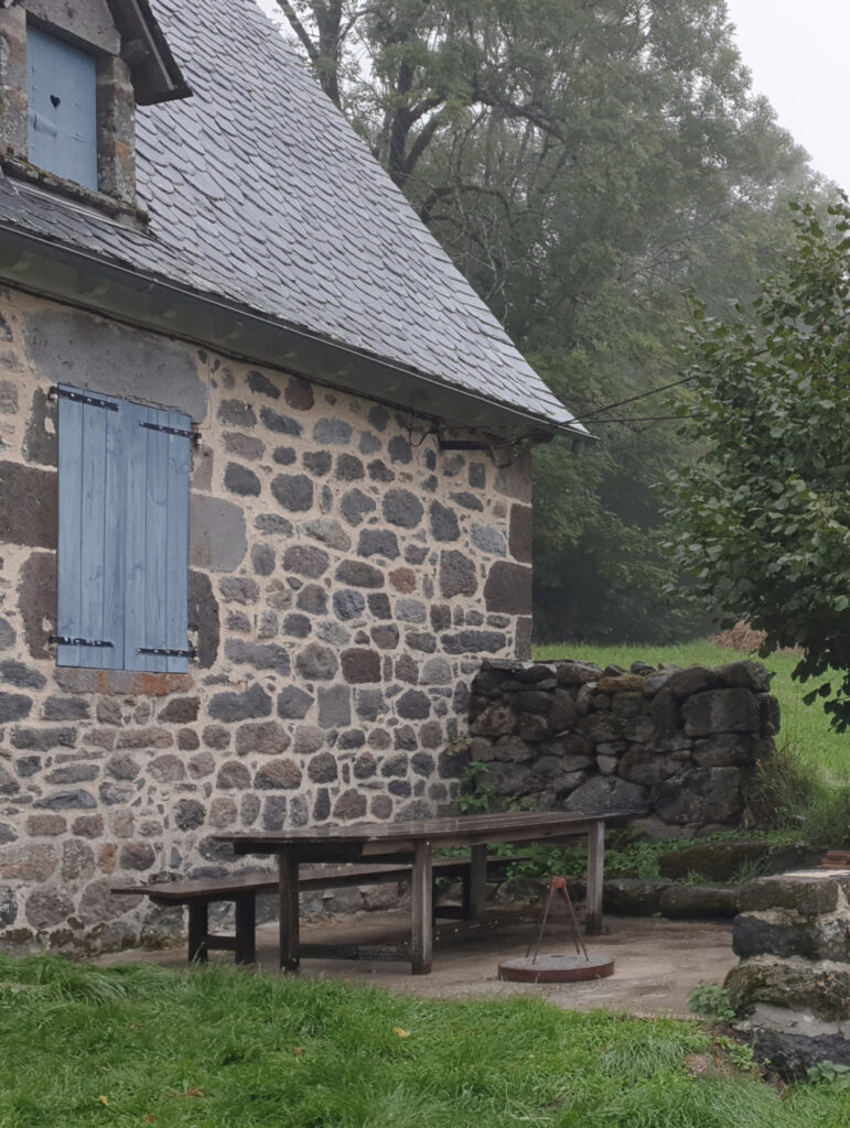 L’intervention s’articule autour d’un geste architectural fort : la création d’une grande ouverture côté nord, pensée pour capter la lumière naturelle tout au long de la journée. Cette nouvelle généreuse baie devient un véritable élément de caractère. Elle est mise en valeur par un encadrement en béton bouchardé, dont la texture contemporaine dialogue avec l’authenticité de la maison.